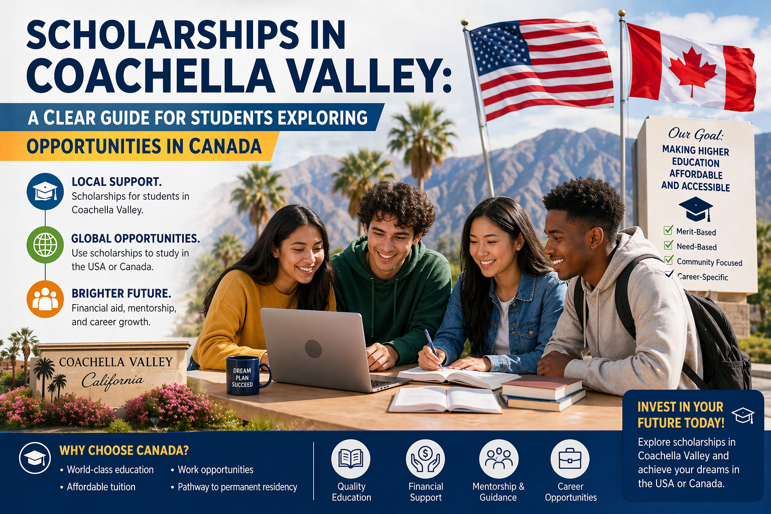 Scholarships in Coachella Valley are a powerful tool for students aiming to study in the United States or Canada. By combining local funding with international scholarship opportunities, students can build an affordable path to higher education.